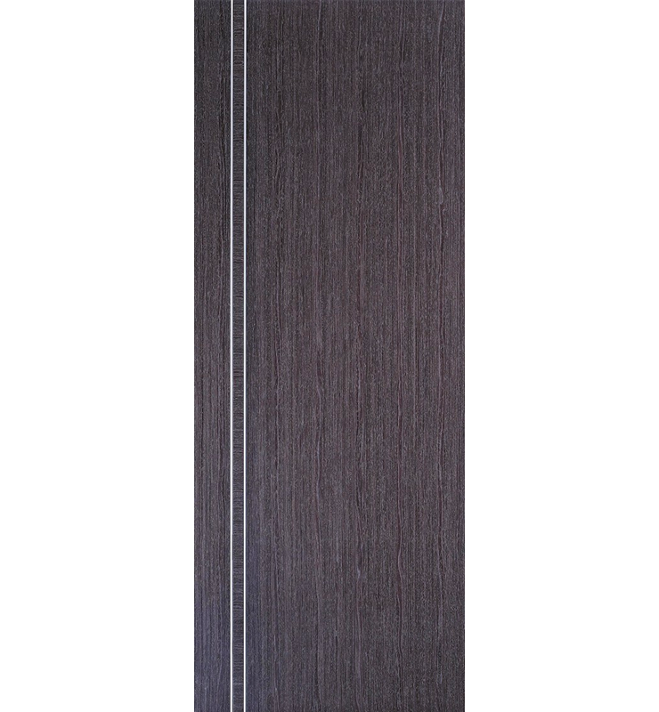 In a minimalist and aesthetically pleasing design, this attractive dark grey door is accented by two aluminium effect inlays to one side.