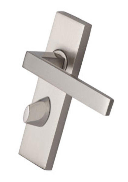 The Delta Lever Bathroom is an ideal choice of handle, with a stunning modern contemporary design this handle will be a fantastic choice for a multitude of different modern styled bathroom doors.. This handle is available in; Polish Chrome, Apollo Finish and Satin Nickel. This particular handle possesses a privacy turn to ensure total privacy.