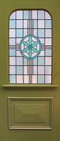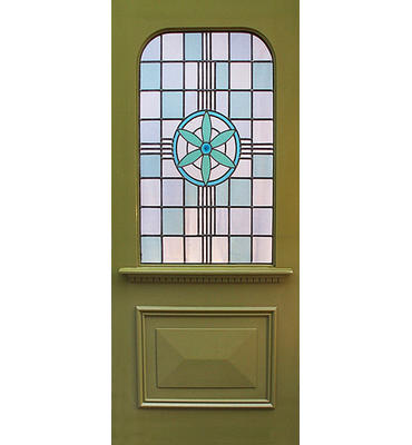 The glazing shown in the photo (flower design with geometric pattern) is available in both single and encapsulated glass options. If you wish for this feature pattern to be supplied with your door, please select it from the "Glazing" dropdown box above.