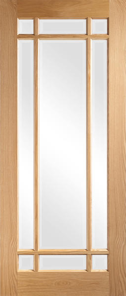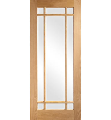These Internal Oak Bevelled Glazed Kerry from Deanta Doors have a contemporary three-light design with clear glass and an attractive grain in the timber.