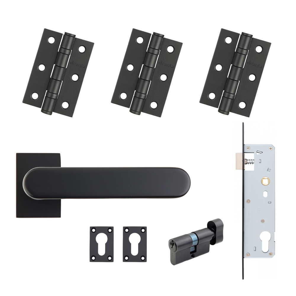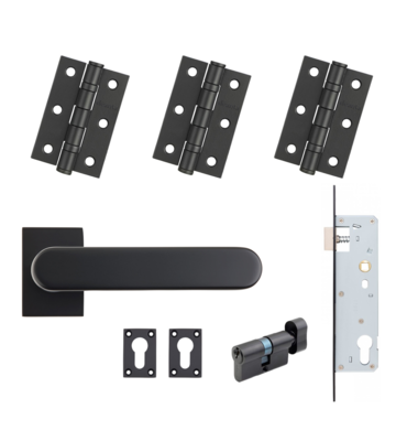 The Matt Black pack comes with a matt black slim profile euro sash lock, cylinder, and escutcheon.