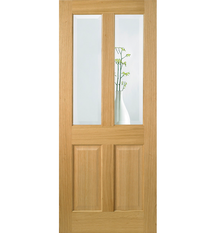 In a tried and tested style, two glazing apertures with attractive clear bevelled glass sit above two raised and fielded panels, allowing light to pass between rooms.
