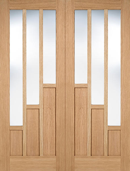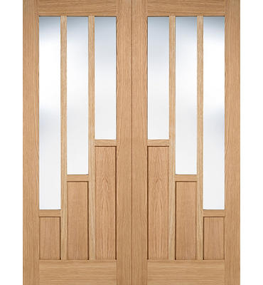 These internal Coventry Oak Glazed door pairs have an attractive stepped three-light design per door leaf with clear glass.