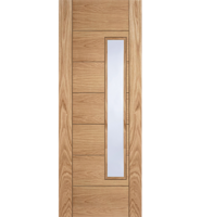 The Internal Oak Pre-Finished 18G Offset Clear Glazed Corsica fire door is a stylish horizontal panelled door.