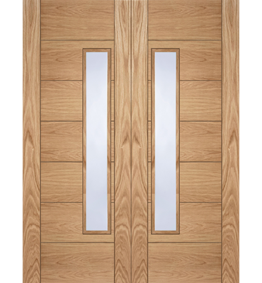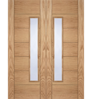 The Internal Oak Pre-Finished 18G Offset Obscure Glazed Corsica fire door pairs are a stylish horizontal panelled door.