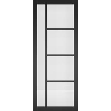 The Pre-Finished Black Brixton Glazed door from Deanta Doors forges a uniquely bold industrial experience. With an elegant asymmetrical profile and bold lines, this door brings an element of luxury and class to any property.