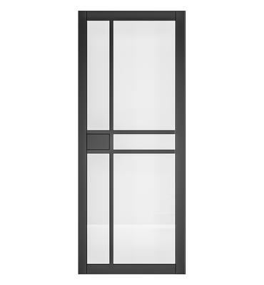 The Pre-Finished Black Dalston Glazed from Deanta Doors door features a contemporary geometric design. The simple straight lines create a minimalistic industrial feel; a perfect door for any modern interior.