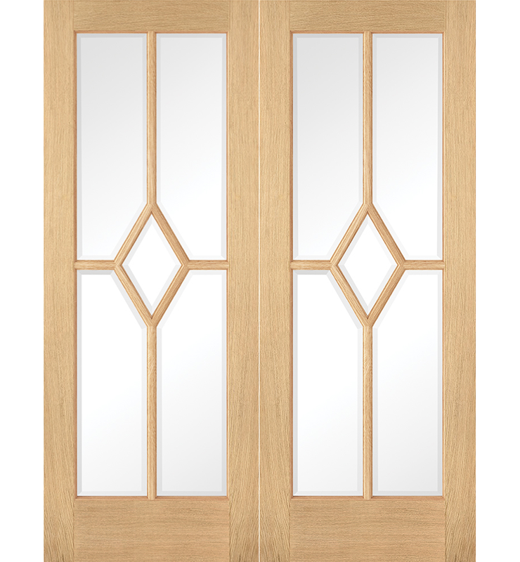 This door pair brings a new option to the Reims style of doors, now coming in a pre-finished oak style. This internal oak door pair features five clear glazed panels underneath a unique diamond design made from decorative beading. The door pair sets itself apart from the rest with its unique and distinct diamond design which is formed using decorative beading makes this door a recognisable piece. This pair door with its elegant design would certainly make a great addition to a multitude of more traditional styled interiors.