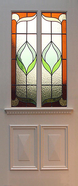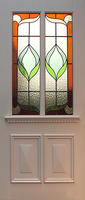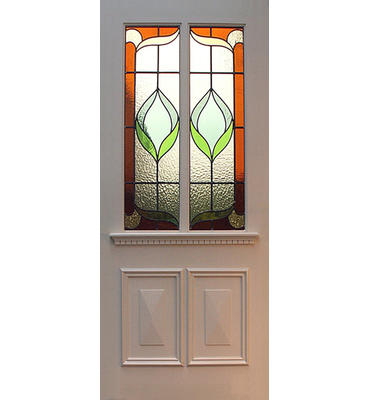 The glazing shown in the photo (flower design with geometric pattern) is available in both single and encapsulated glass options. If you wish for this feature pattern to be supplied with your door, please select it from the "Glazing" dropdown box above.