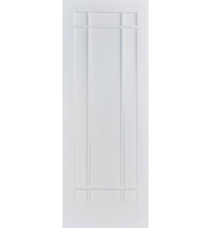 The White Manhattan fire door is a sophisticated design formed by using decorative beading to create the look of nine panels within this traditional style door.