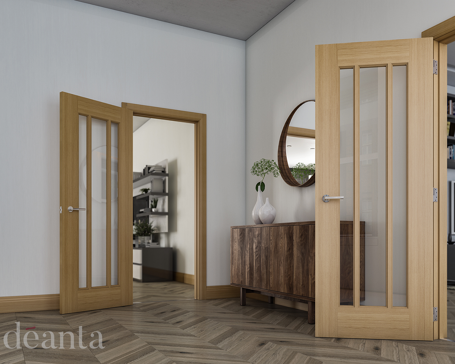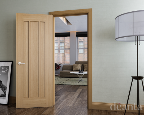 The Internal Oak Norwich range is a contemporary three vertical flat panel design with an attractive grain in the timber.
