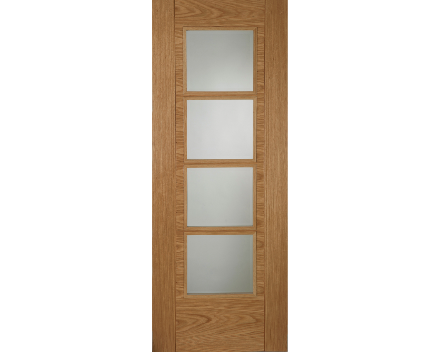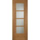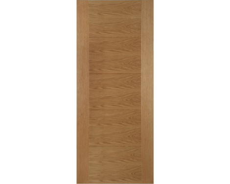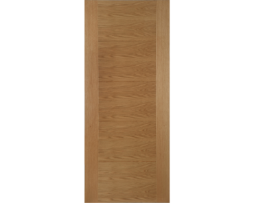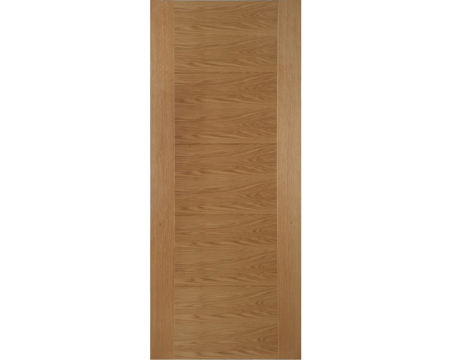 With an attactive modern design, five central panels are created in the face of the door, framed by feature V grooves. With 10mm solid oak lippings and a semi-solid core, these popular doors feature crown cut cross directional veneers and a quality clear satin factory finish.