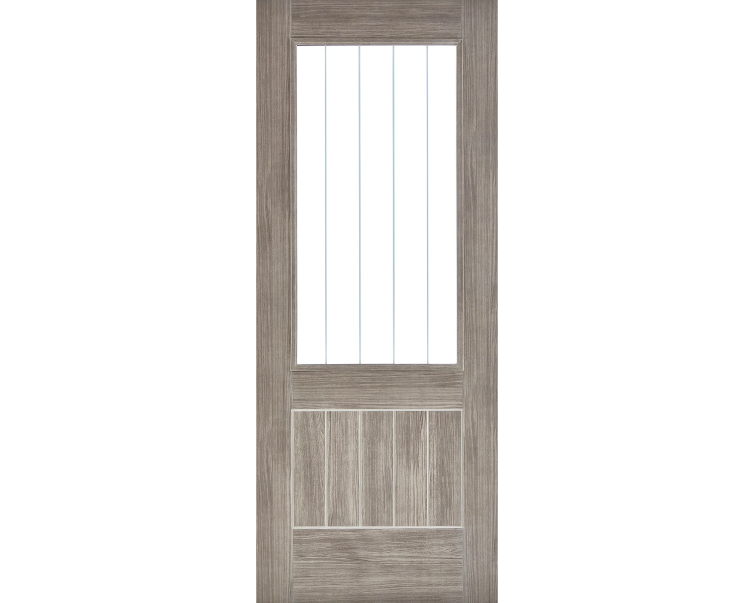 The glazed door option is supplied pre-glazed with a clear safety glass, featuring frosted lines which complement the grooves within the face of the door.