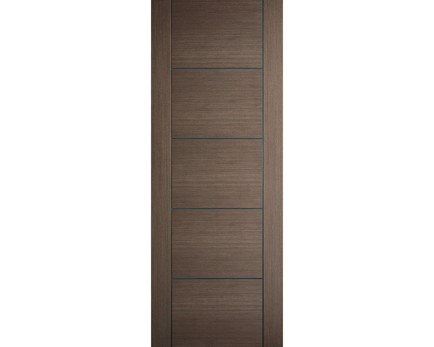 Grooves in the face of the door create elegance and great visual interest by picking out five horizontal panels in the door.